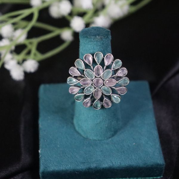 Our Oxidised Finger Rings are timeless accessories that blend rustic charm with bold style. Designed with an antique silver-tone finish, these rings are perfect for adding a traditional yet contemporary touch to your festive and everyday looks.
