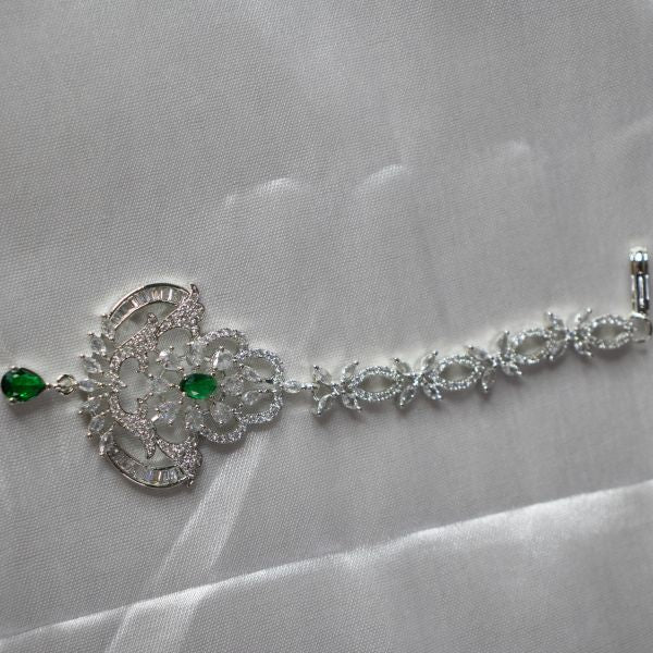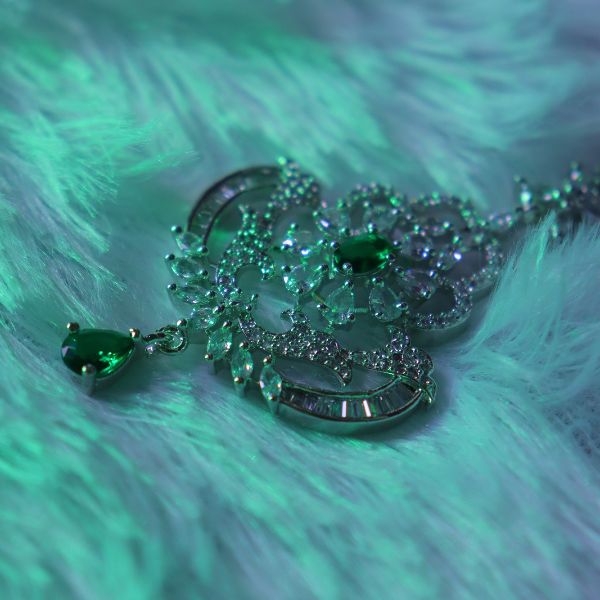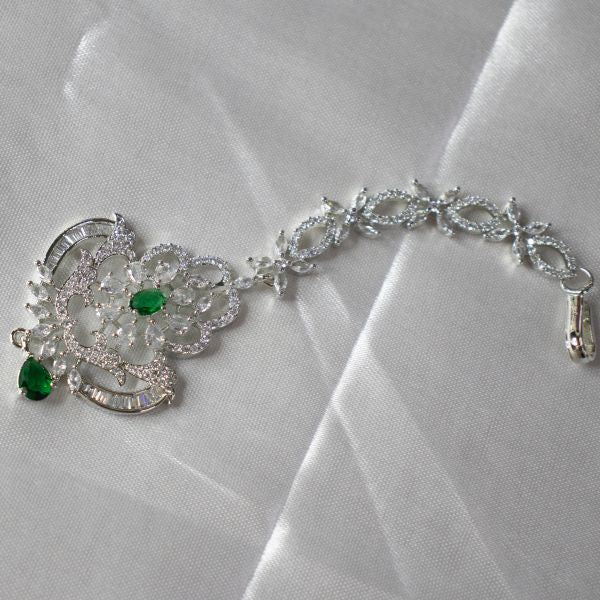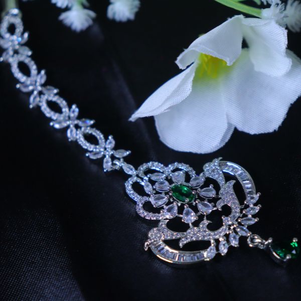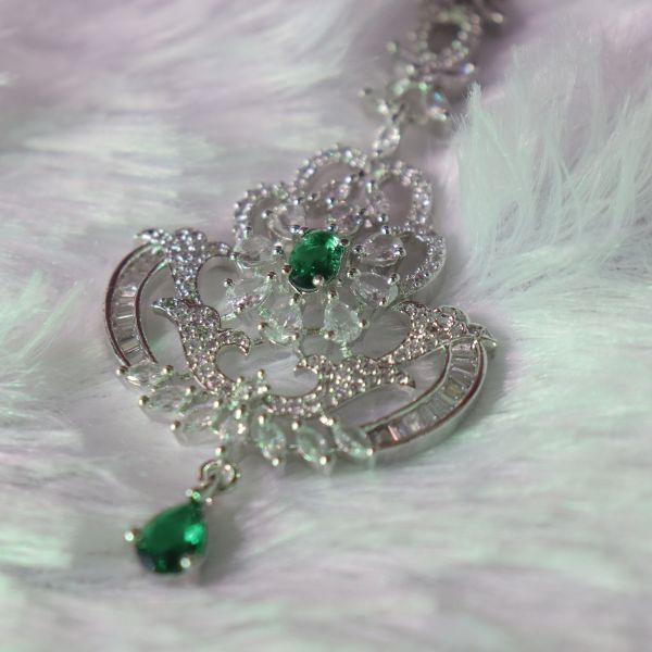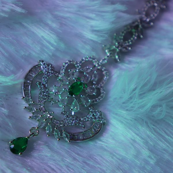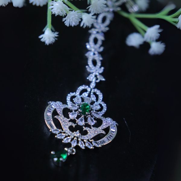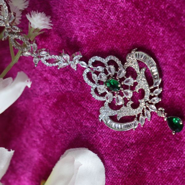 In short: The AD Maang Tikka is a sparkling, versatile accessory that brings a touch of luxury and sophistication, making it an ideal choice for enhancing your festive or bridal look.