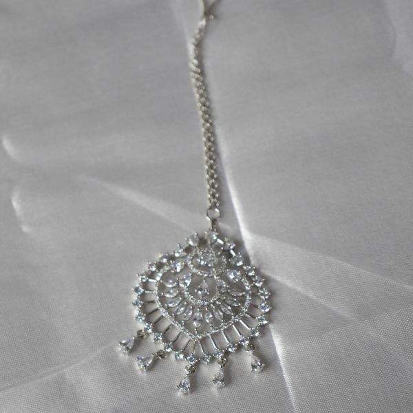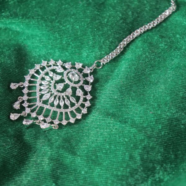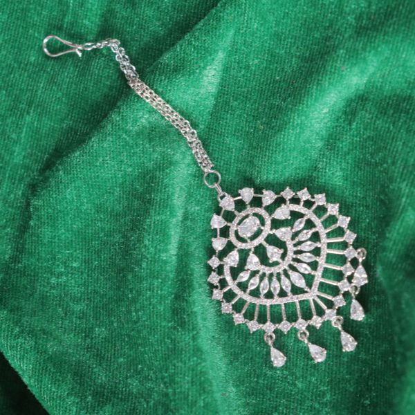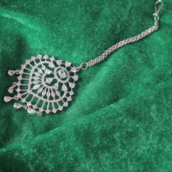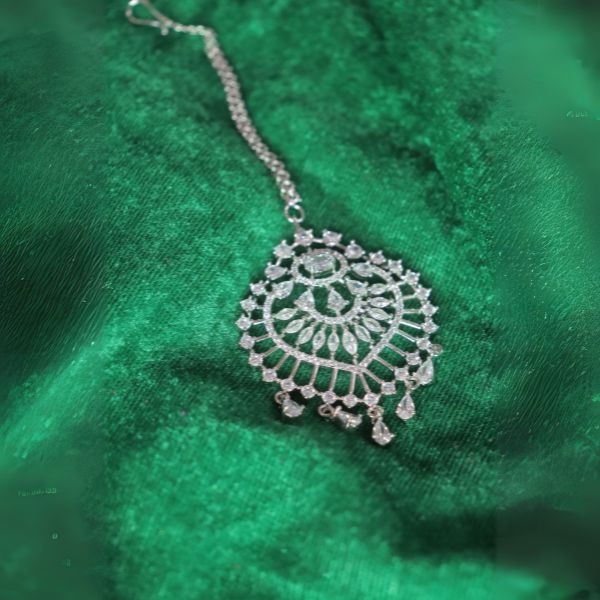 In short: The AD Maang Tikka is a sparkling, versatile accessory that brings a touch of luxury and sophistication, making it an ideal choice for enhancing your festive or bridal look.
