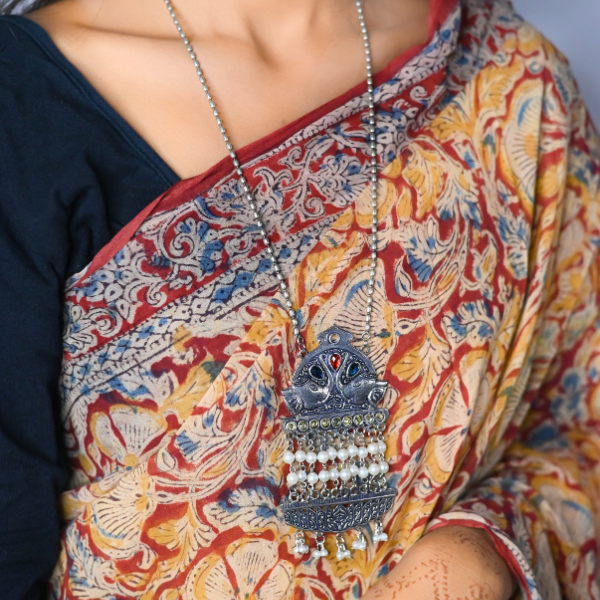 Add a bold statement to your everyday and festive outfits with Oxidise Neckpiece 9. Featuring a vintage-inspired oxidized finish, this neckpiece brings rustic charm and intricate detailing that captures the essence of traditional artistry. Perfect for pairing with both ethnic and contemporary looks, it adds an edgy yet elegant flair to your style.