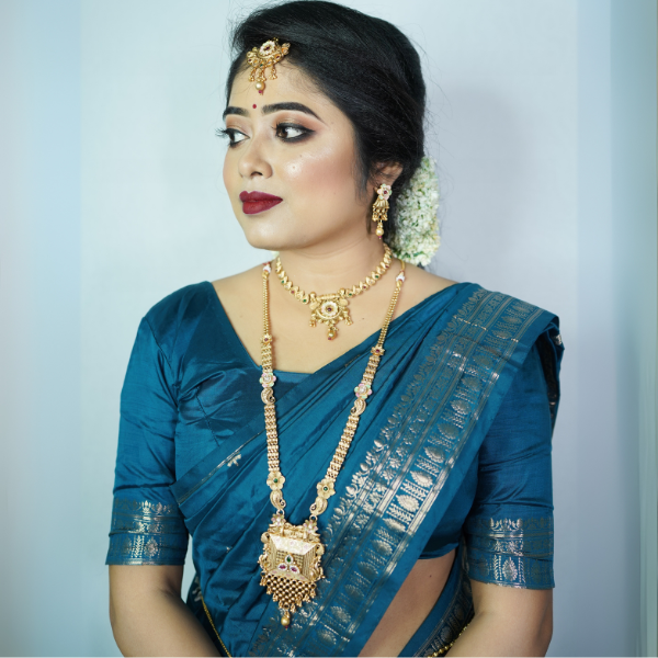 Crafted with precision in antique gold finishes and often embellished with semi-precious stones, pearls, or kundan work, temple jewellery adds a majestic charm to festive occasions, weddings, and cultural celebrations. A true blend of devotion and design, this neckpiece is not just an accessory but a treasure that reflects tradition, prosperity, and divine beauty.